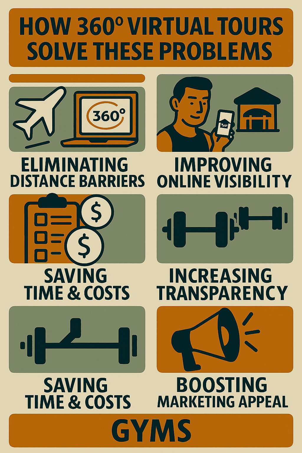 Traditional photos don’t fully capture the experience of high-end features like spa areas, swimming pools, or group classes.